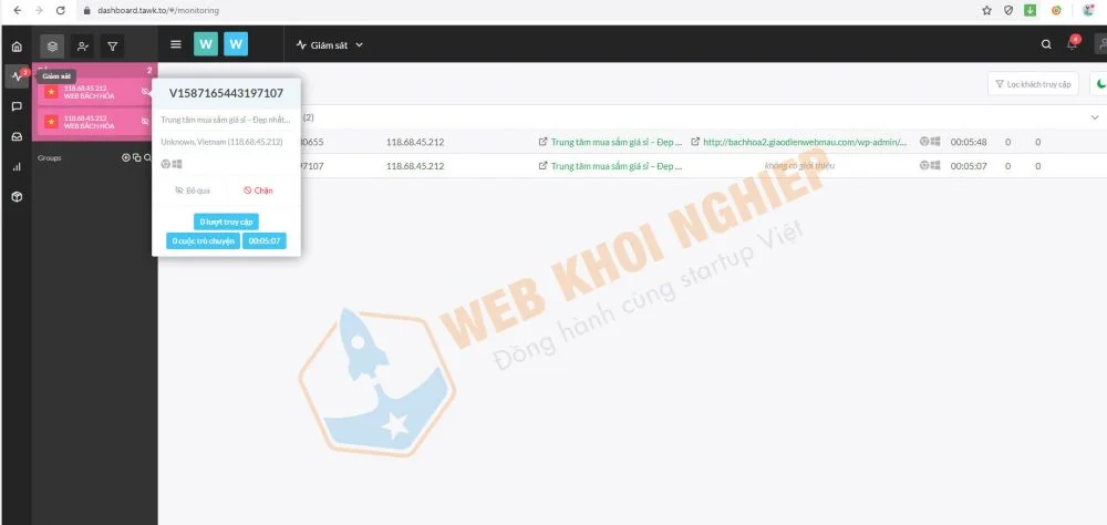 1.Phần giám sát: Phần này hiển thị tổng quan tất cả các tin nhắn khách nhắn tới trên website